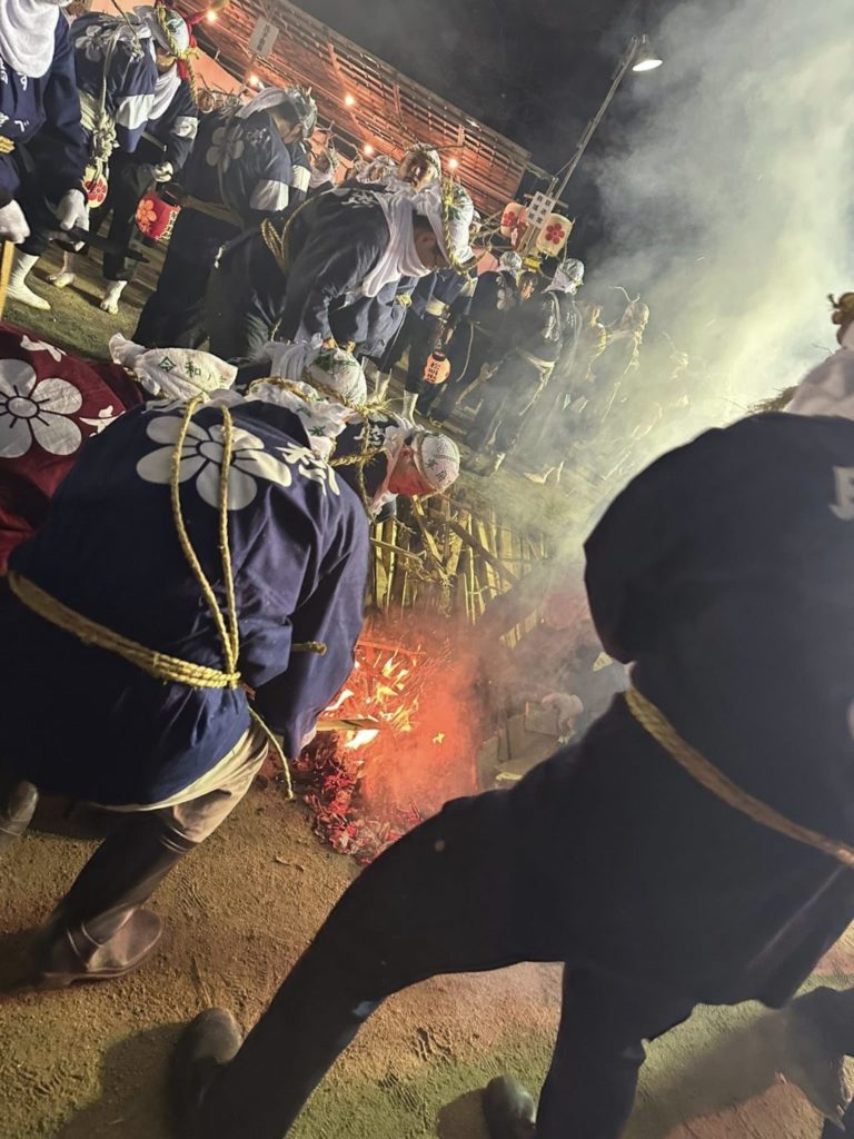 燻し出された鬼が外に出て、お祭りは終わります。燃え盛る火とぶつかり合う人、静と動が交差する神秘的なお祭りです。