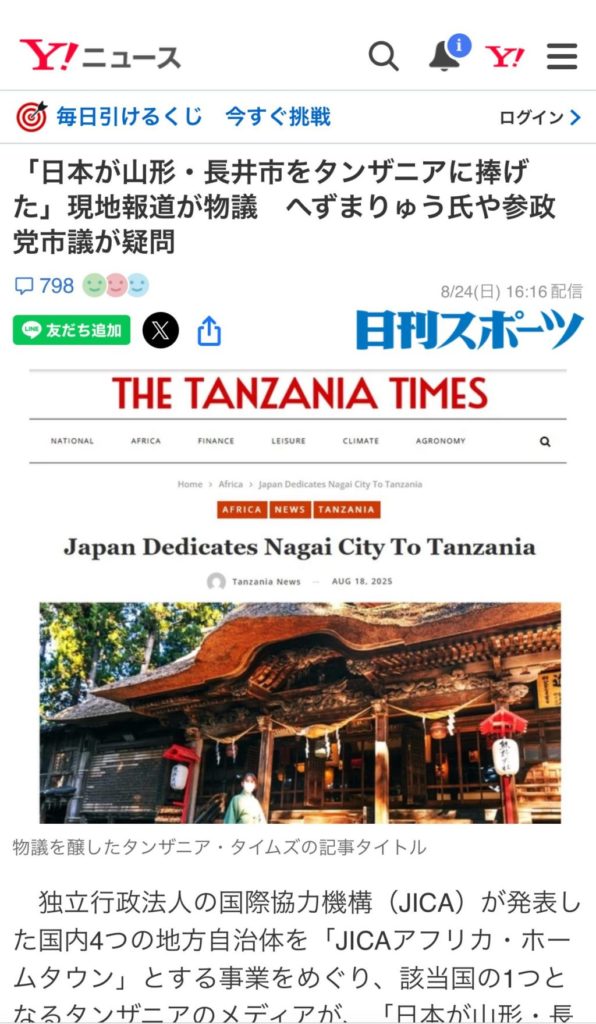 騒ぎの発端は、タンザニアの小さな地元紙が「Japan Dedicates Nagai City to Tanzania」という記事をネットに上げたことです。ホームタウン構想は、山形県長井市とタンザニアのように既に友好関係のある二都市間の交流をさらに「強く推進する(dedicate)」という趣旨だったのですが、このdedicateの意味を「捧げる」と訳した人がネットで拡散したことから誤解が一気に広がりました。