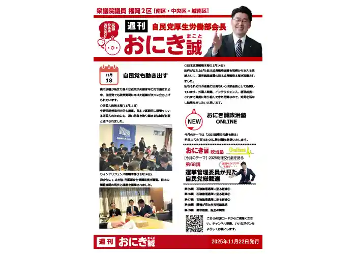 今週の『週刊おにき誠』では、「自民党も動き出す」についてまとめております。