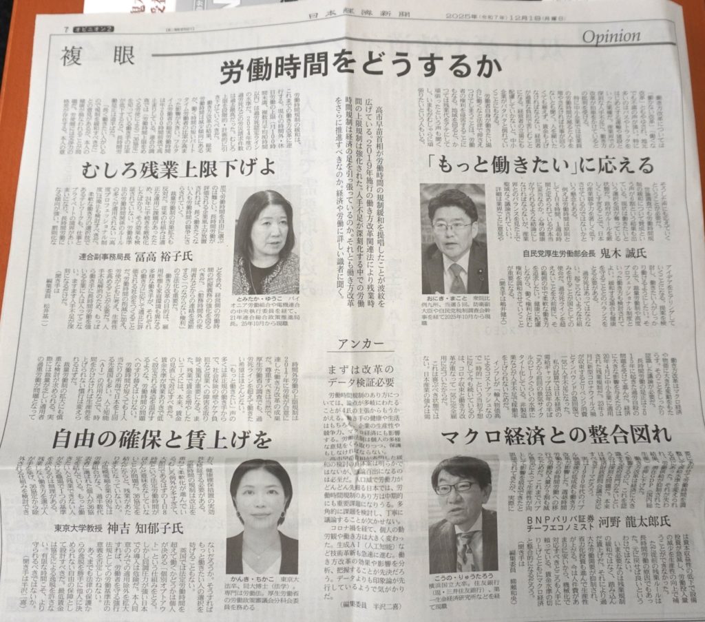 12月1日の日本経済新聞 朝刊に、#働き方改革の見直し について私のインタビュー記事が掲載されました。