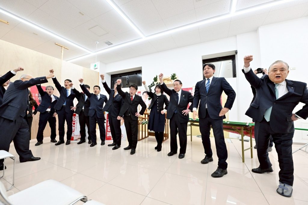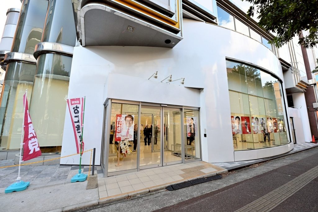 パチンコラッキーランドが入っていたビルの一階です。自走式の立体駐車場が隣接しています。本日10時から、事務所開きの神事を行いました。急な解散だったもので、あまり多くの方に告知できておらず申し訳ありません。足りないものばかりですが、急ピッチで臨戦態勢を整えているところです!ぜひ多くの方に足を運んでいただきたいと思います。