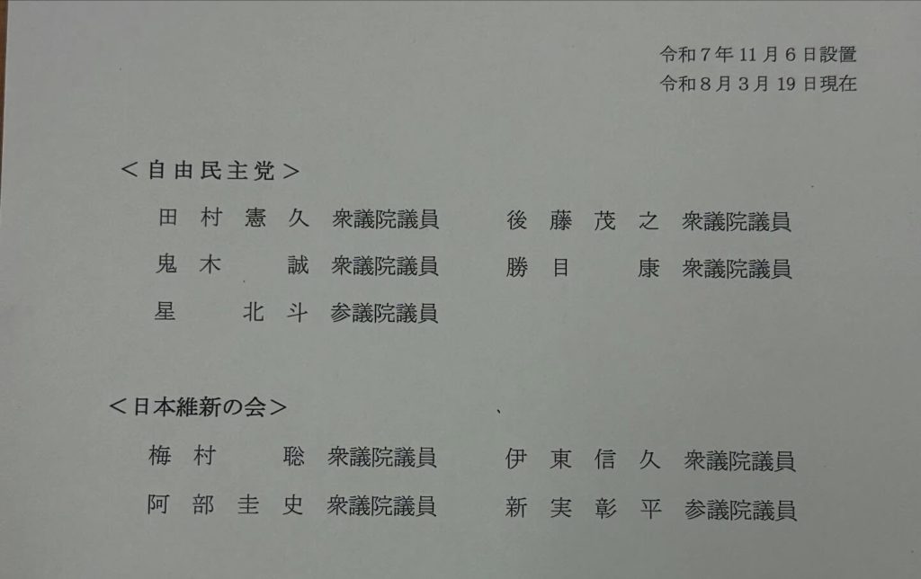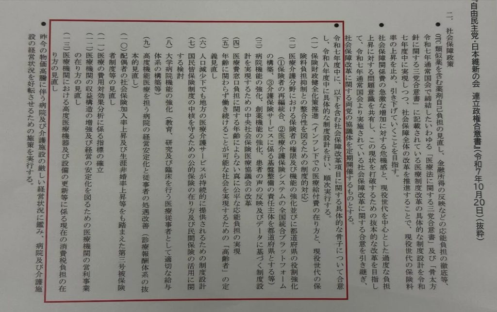 昨年、自民-維新の連立合意の際に、13項目の社会保障改革が文書で交わされました。これらの課題を解決するための協議体メンバーに、引き続き選ばれました。